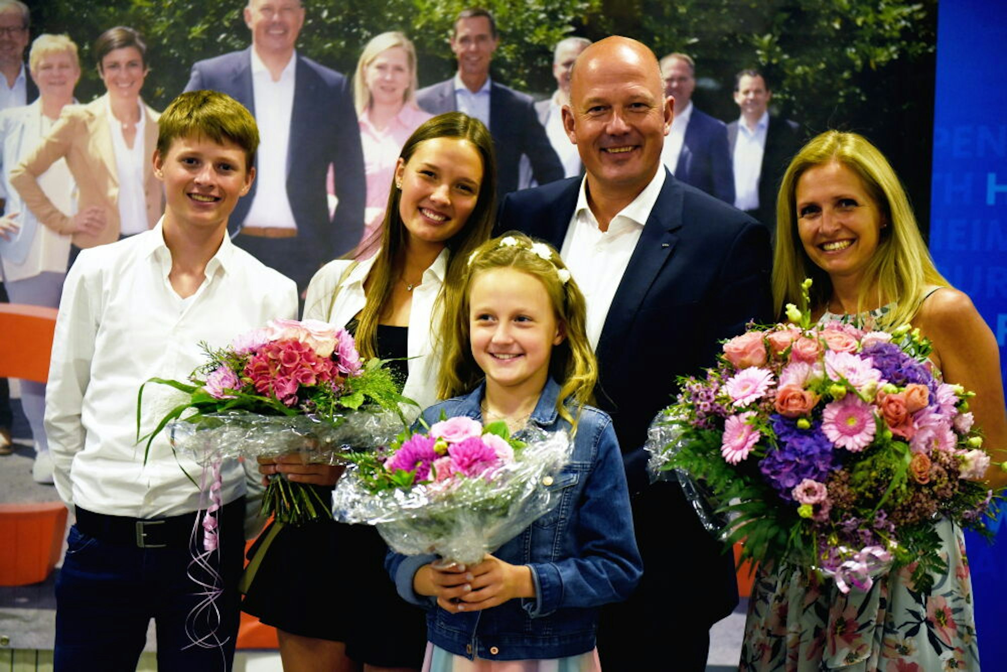 Frank Rock (CDU), hier mit Frau und Töchtern, hofft auf eine hohe Wahlbeteiligung in der Stichwahl.