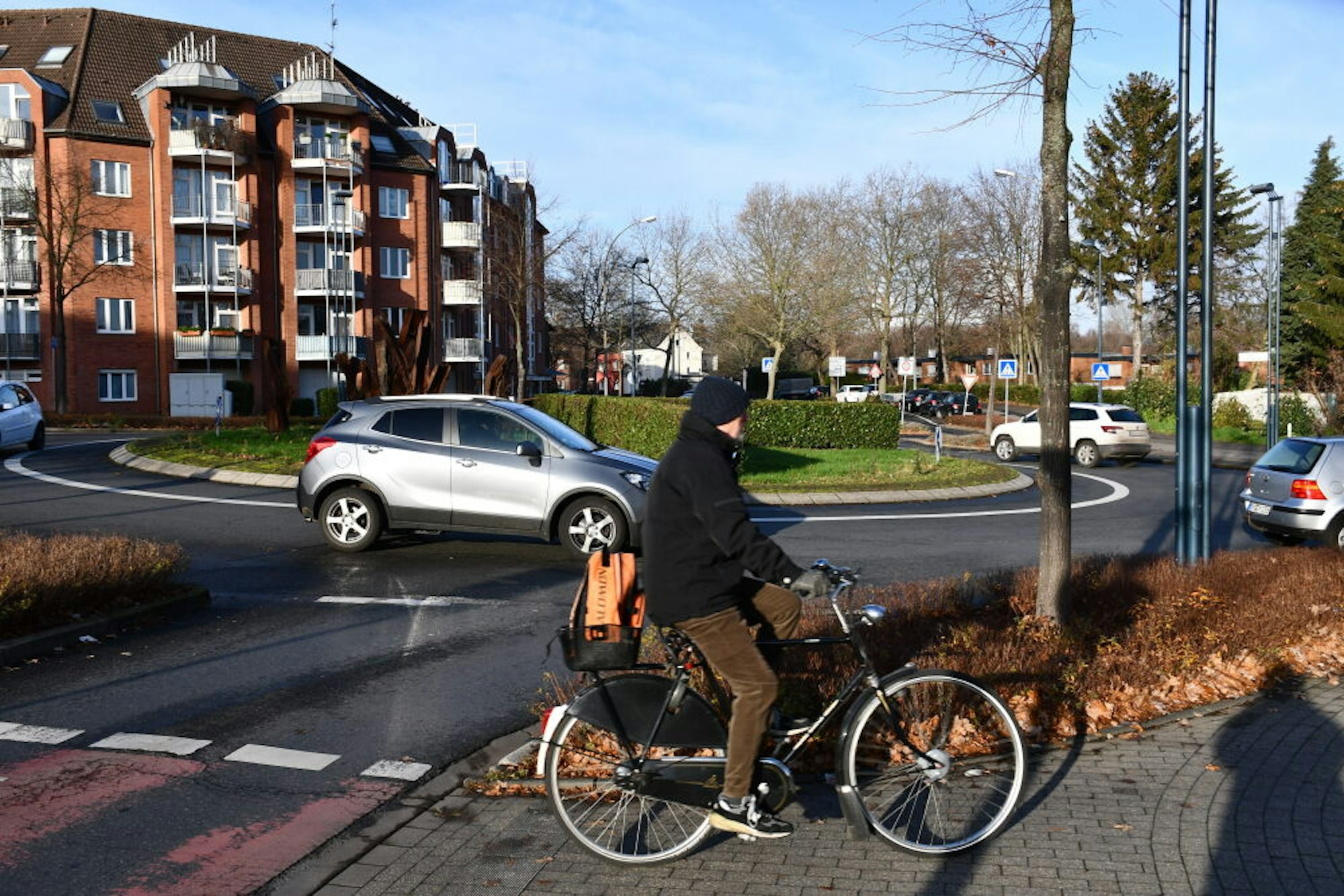 Ist am Kreisverkehr ein Radweg vorhanden, wie hier an der Friedrich-Ebert-Straße in Hürth, so muss er auch zwingend benutzt werden.
