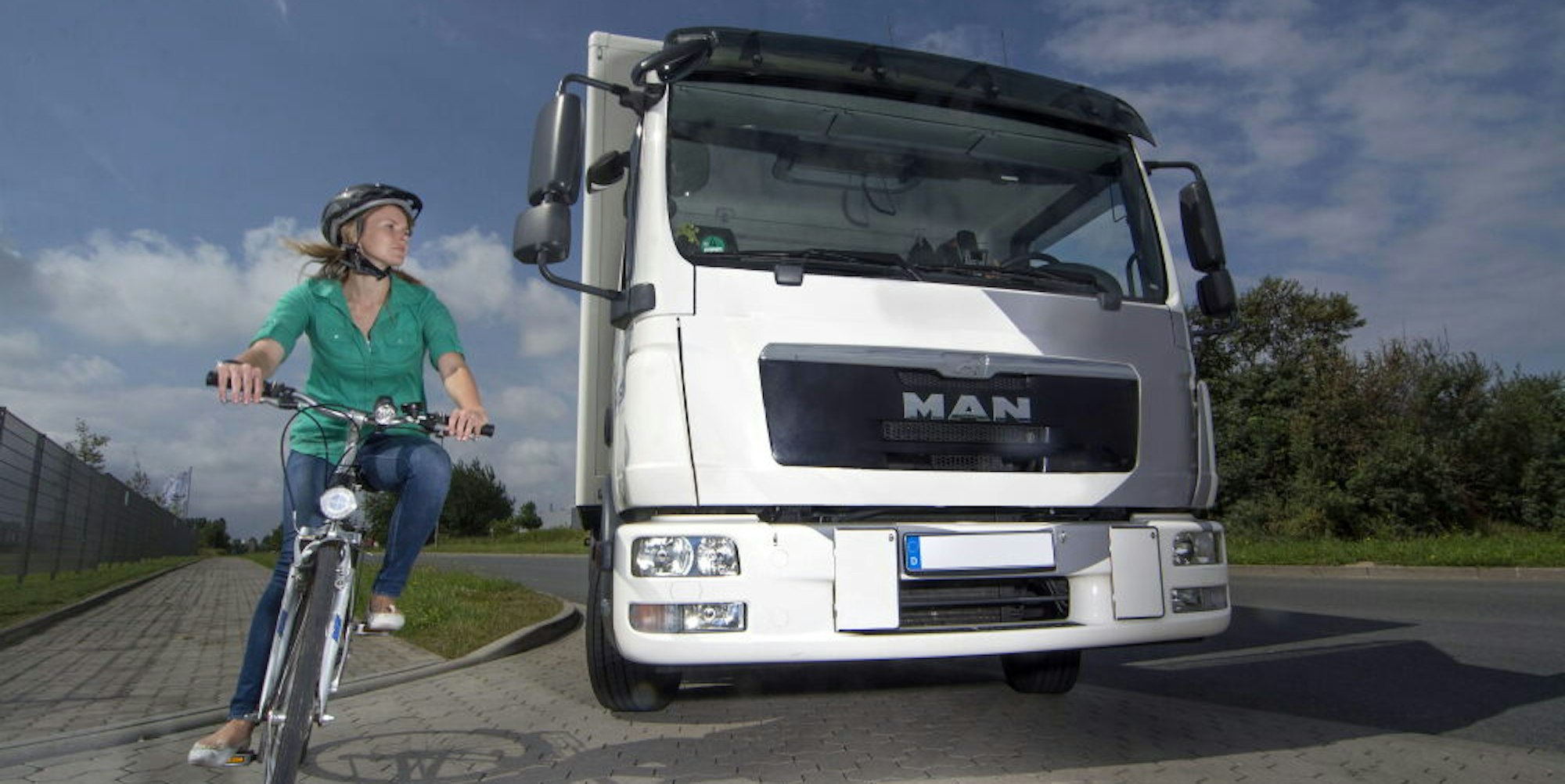 Toter Winkel: Oft können Lkw-Fahrer von ihrem Sitz aus die Fahrradfahrer nicht sehen.