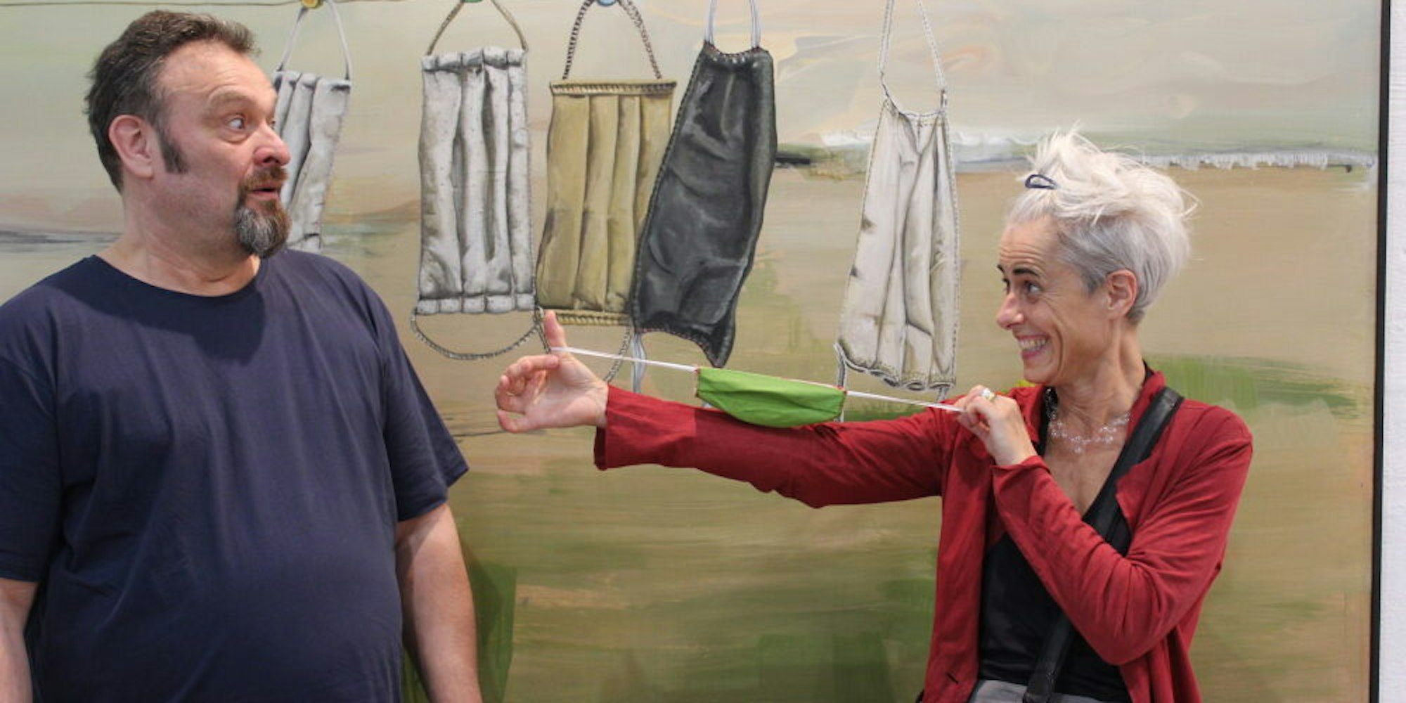 Die Ergebnisse der erzwungenen Isolation, die sie überwiegend in ihrem Wesselinger Atelier verbracht haben, zeigen sie jetzt in der Scheunengalerie im Schwingeler Hof. Der größte Teil der Gemälde ist in den vergangenen Monaten entstanden, und natürlich hat die Corona-Pandemie dabei ihre Spuren hinterlassen.