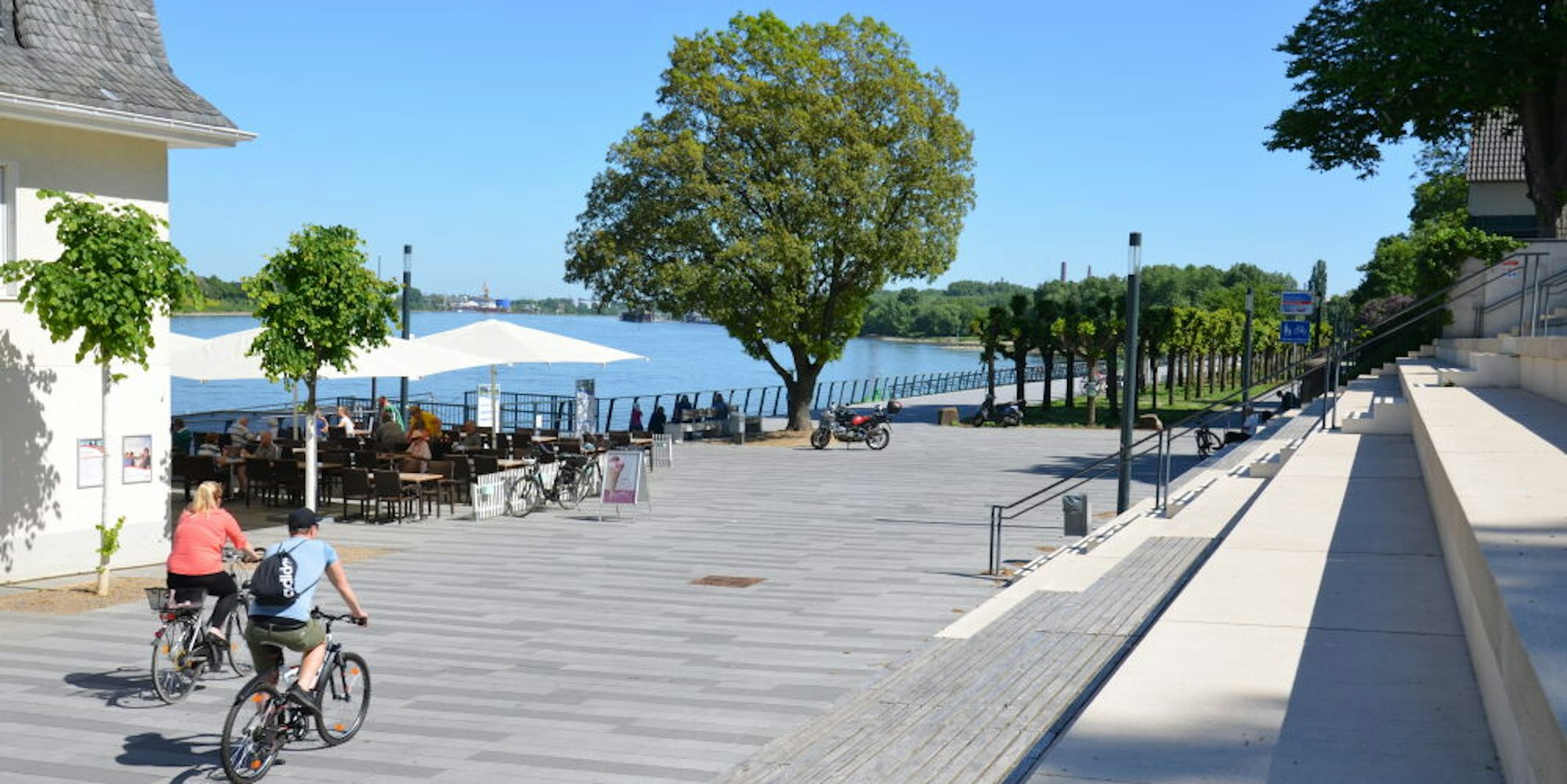 Die Promenade am Rheinufer in Wesseling hat eine hohe Aufenthaltsqualität und kommt bei Besuchern sehr gut an.