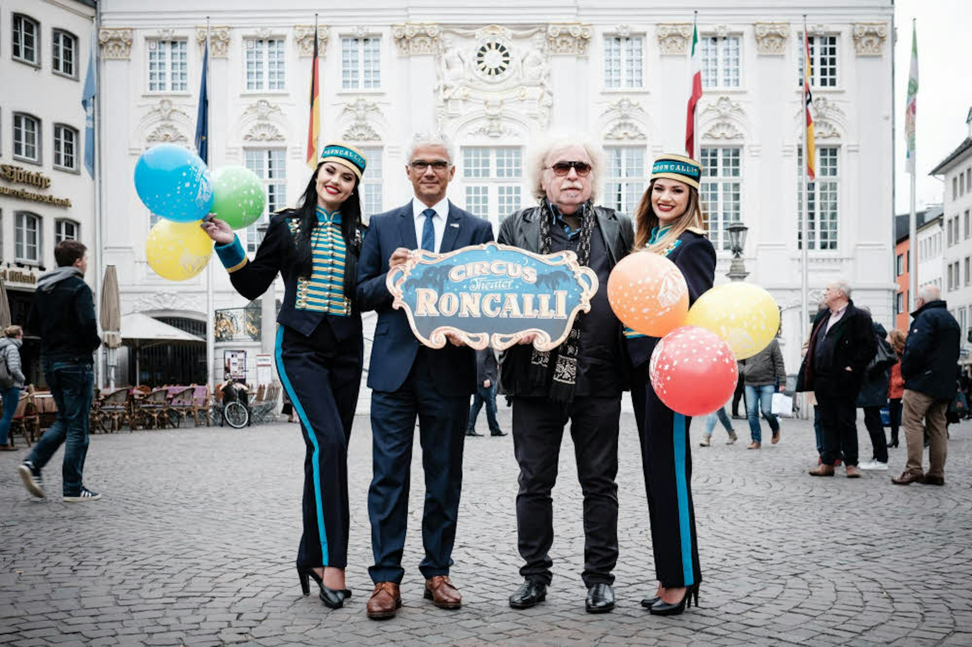 Bonn – „Hallo, Herr Roncalli“: Ein Brautpaar, gerade getraut im Alten Rathaus der Stadt Bonn, bittet Bernhard Paul am Freitagmittag, mit ihm für ein Foto zu posieren. Der Direktor des Circus Roncalli ist solche Anreden gewöhnt, er eilt herbei, stellt sich wie auch Bonns Oberbürgermeister Ashok Sridharan neben die Frischvermählten, lächelt, eine Fotografin drückt auf den Auslöser ihrer Kamera, dann eilen Sridharan und Paul zu einer Pressekonferenz ins Rathaus.