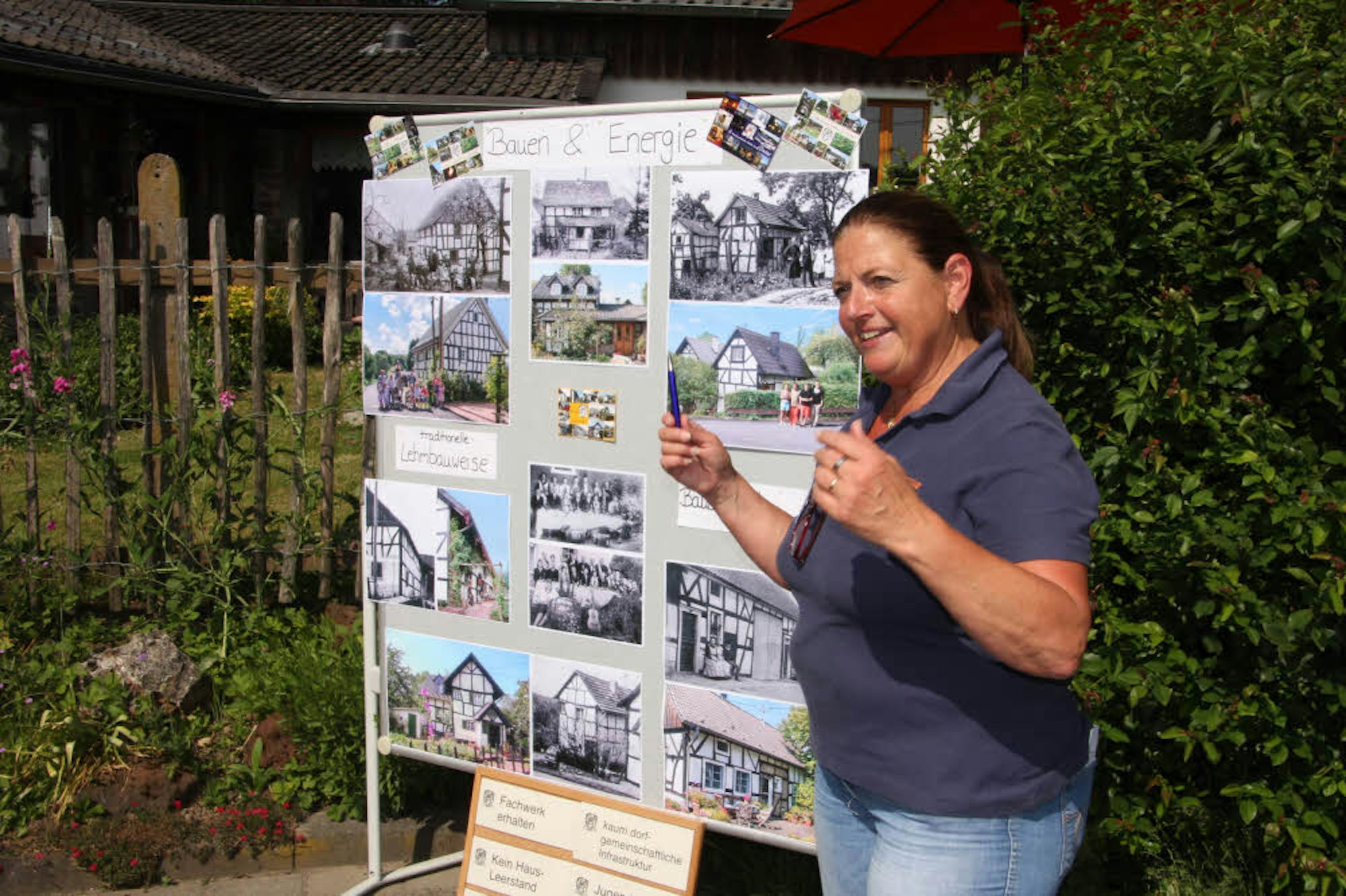 Im eigens eingeheizten Backes war der Streuselkuchen gebacken worden, Rainer Pogoda stellte im Obst- und Gemüsegarten die Produkte vor, die fast Selbstversorgung ermöglichen. Gaby Schoofs und Ralf Badtke stellten die Einbettung in die Natur dar, Felix Knopp vom Kreis konnte den neuen Obstbaumweg ankündigen. Die gelungene Mischung alter und neuer Häuser war Thema von Silvia Binot, die die Wohnraumknappheit thematisierte, Zuzug nahezu ausgeschlossen. Hagen zeigte seinen Bio-Hof und Kaltblutzucht, in seiner Scheune wurde die Dorfhymne live vorgetragen. Und zum Abschluss gab es in der Pfingsthütte nicht nur Infos zum digitalen Dorfmuseum, sondern auch frisch gebraute Bier aus dem benachbarten Issertshof.