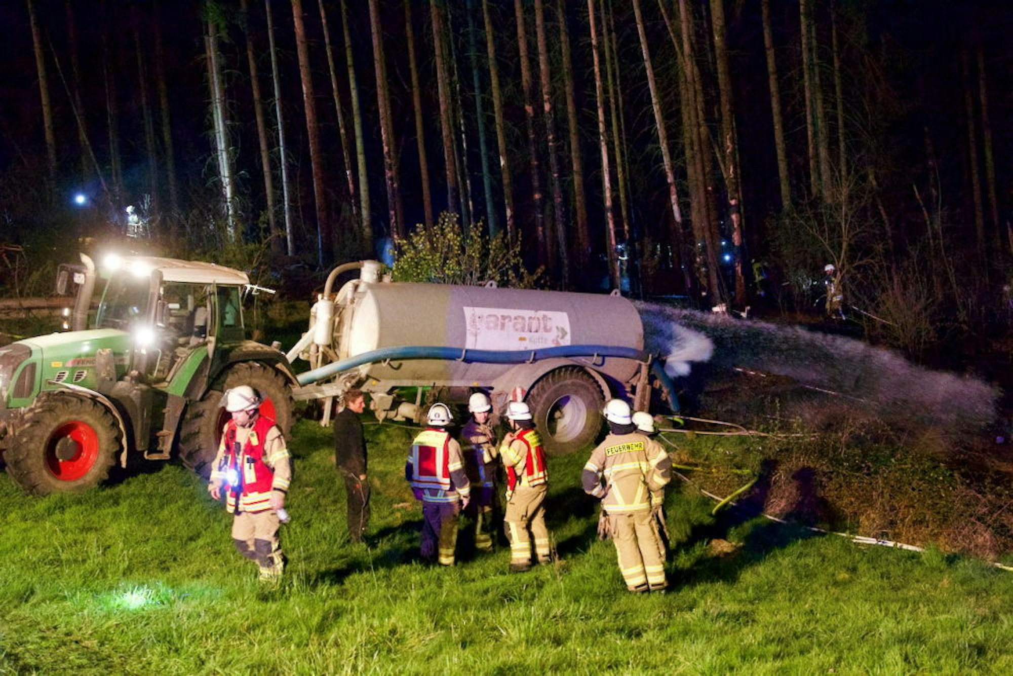 Zusätzliches Löschwasser stellten Landwirte zur Verfügung, sie brachten es in Gülleanhängern zum Brandort.