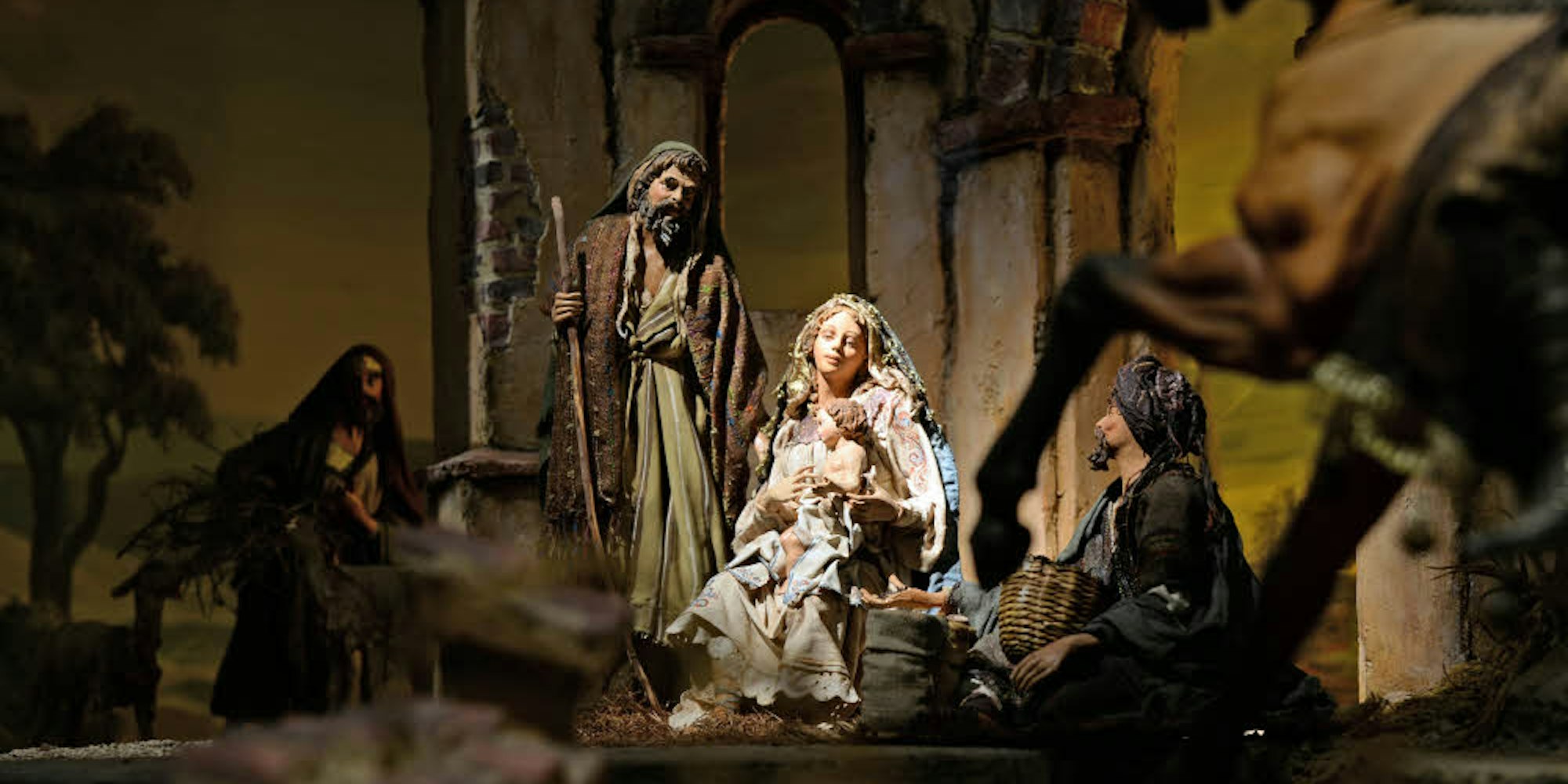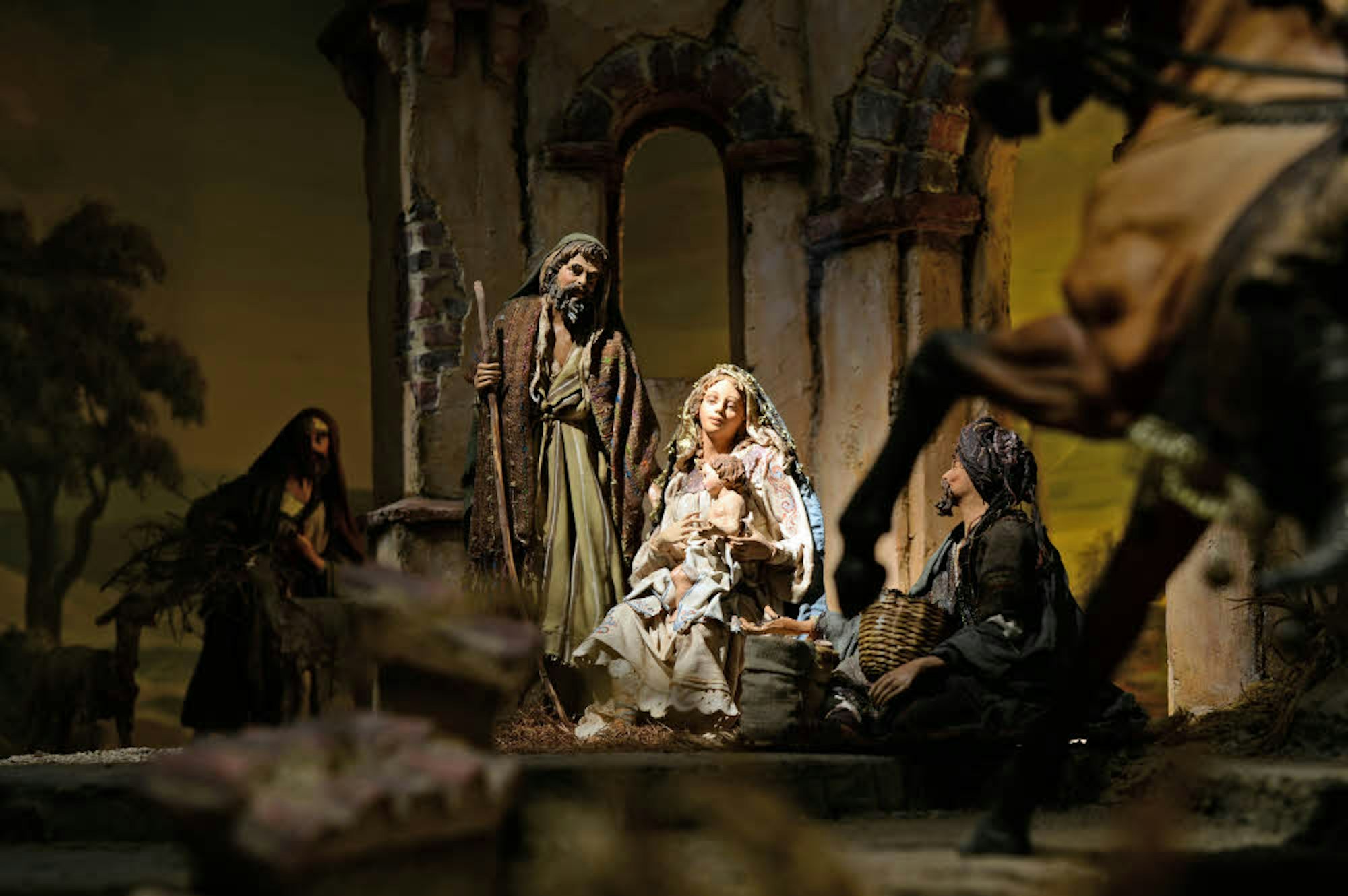 Maria mit dem Jesuskind im Stall von Bethlehem, wo die Heiligen drei Könige dem Sohn Gottes ihre Gaben bringen. (Symbolbild)