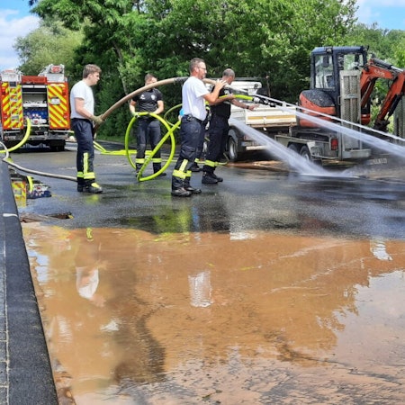 Es kam auf Grund der zeitweise notwendigen Sperrung der B 42 zu Verkehrsbehinderungen. „Auch wenn letztlich der Einsatz der zahlreichen Kräfte nicht erforderlich war, so konnte eindrucksvoll gezeigt werden, dass bei einem größeren Schadensereignis die regionale Zusammenarbeit der Feuerwehren funktioniert“, bilanzierte die Feuerwehr Königswinter. (csc)