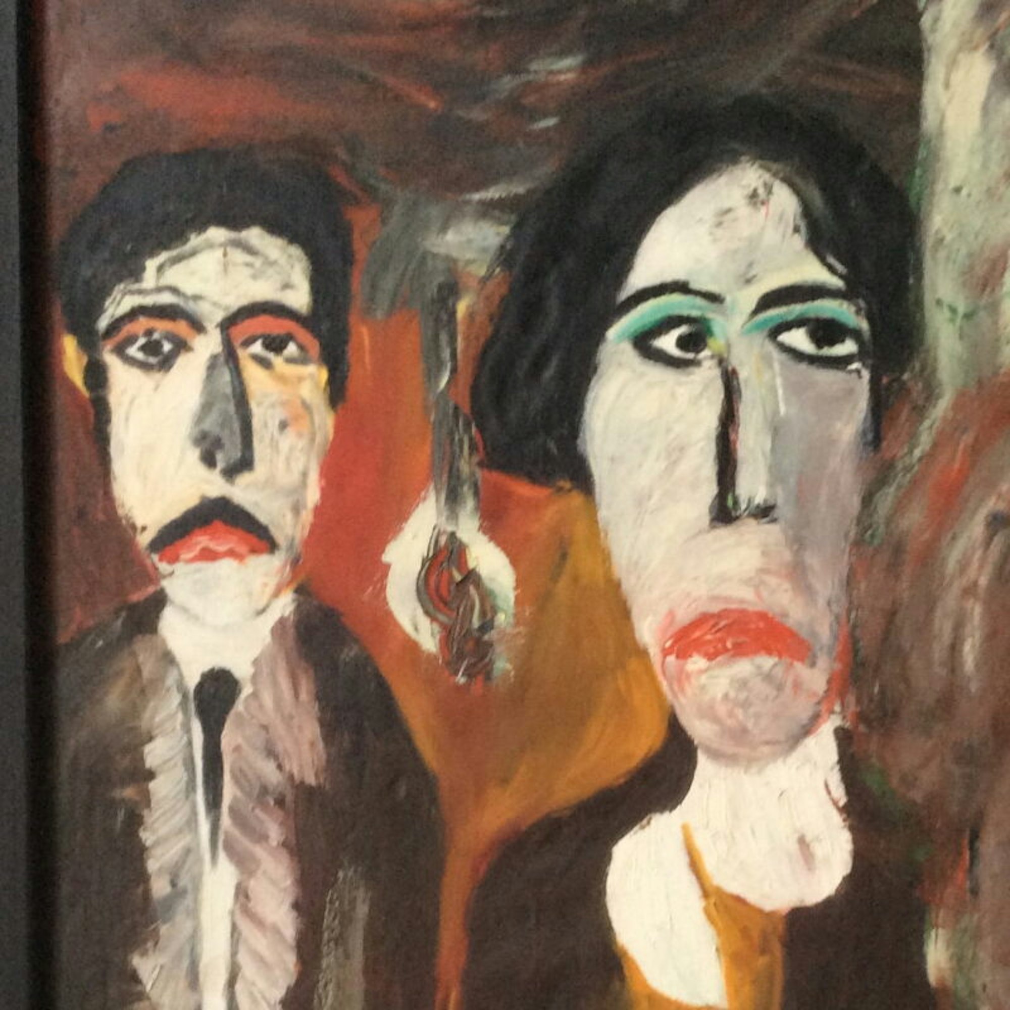 Eines der ersten Ölbilder von 1972 zeigt die Eltern Pasquale und Angelina beim Abschied ihres Sohnes, der als Gastarbeiter fortging.
