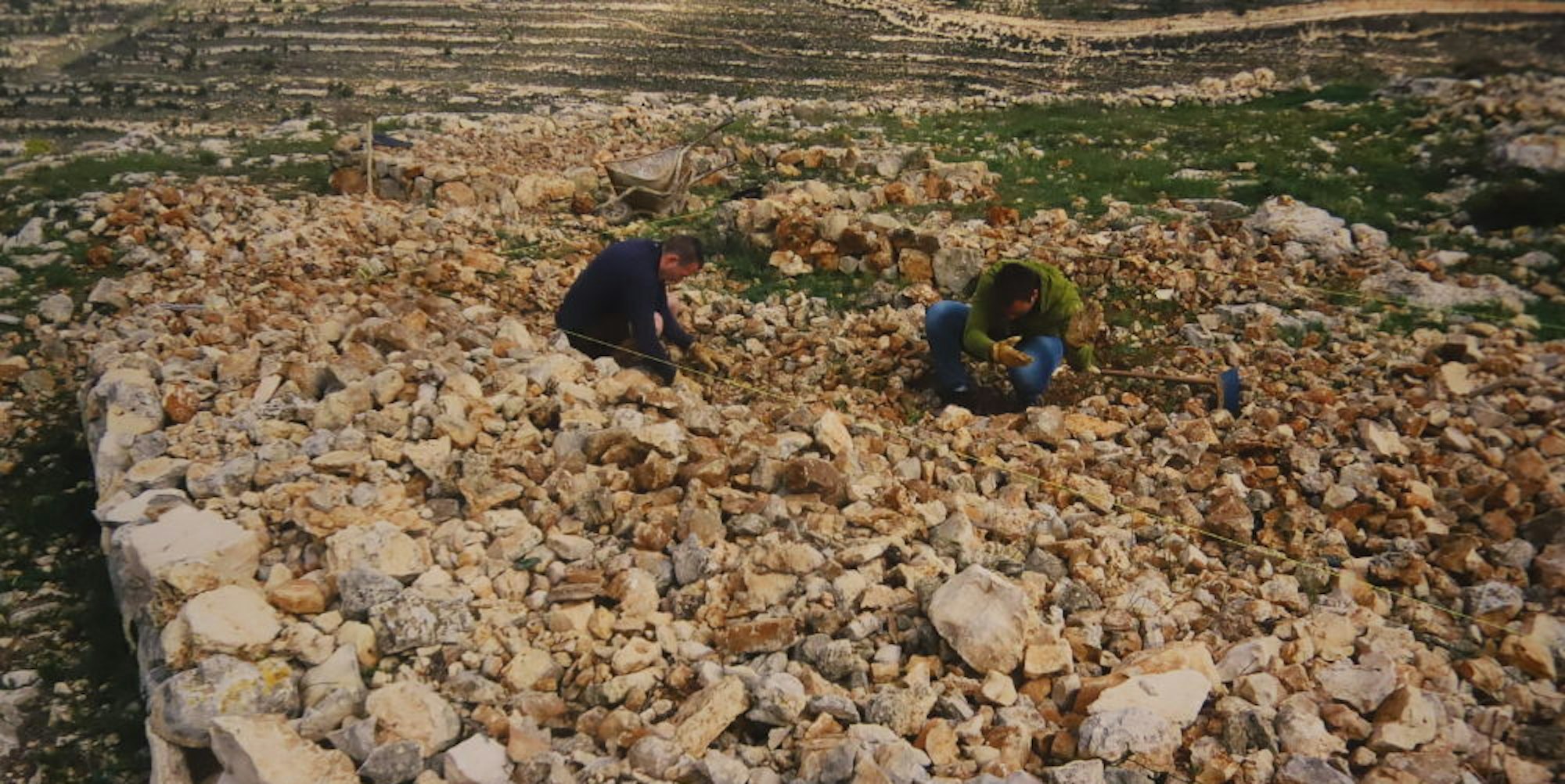 Palästinensische Arbeitskräfte betätigen sich beim Friedensprojekt im umkämpften C-Gebiet.