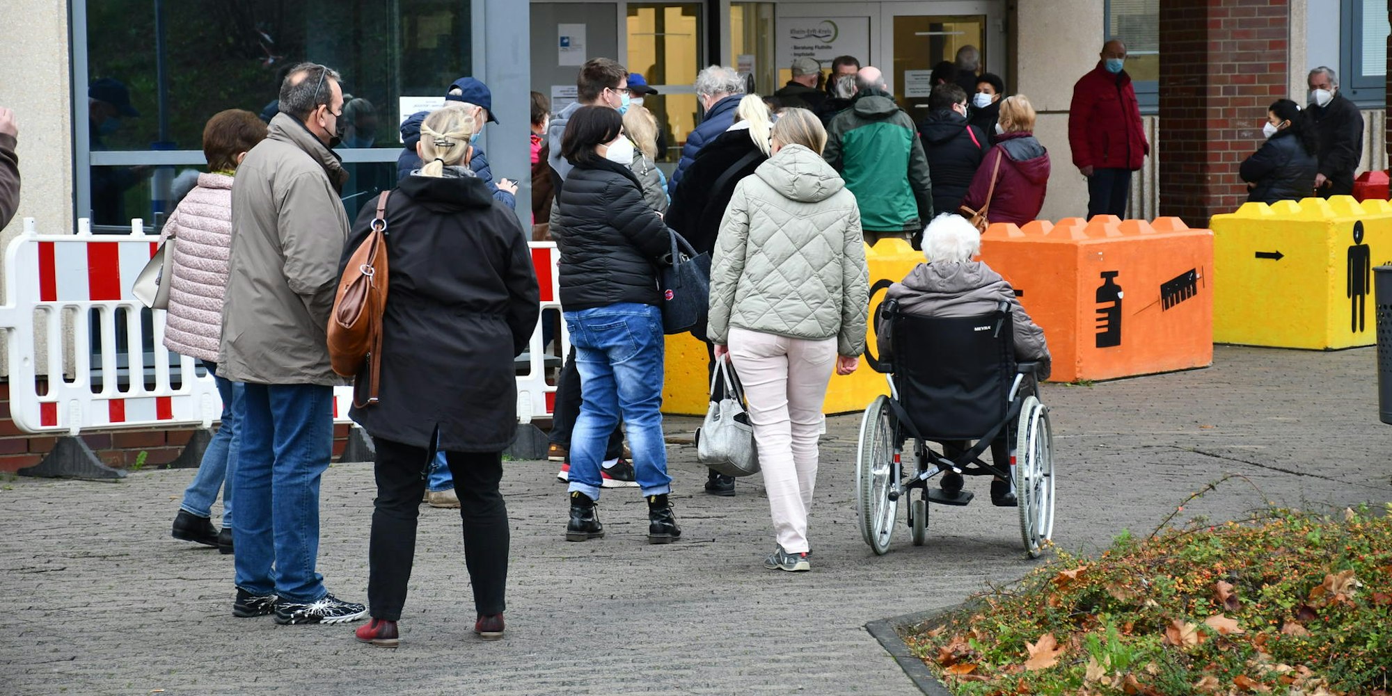 Vor dem früheren Impfzentrum bilden sich Schlangen.