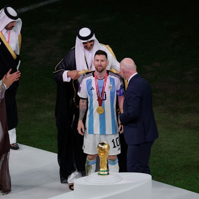 Der Emir von Katar hatte Lionel Messi vor der WM-Pokal-Übergabe ein traditionelles Gewand umgelegt - und sorgte damit bei vielen Zuschauern für Unverständnis. Auch Ex-DFL-Chef Andreas Rettig übt daran Kritik.