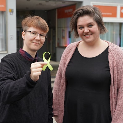 Annette Ratsch (l.) und Tine Verfürth holen den neuen Schreibtisch für Ratschs Enkeltochter ab.